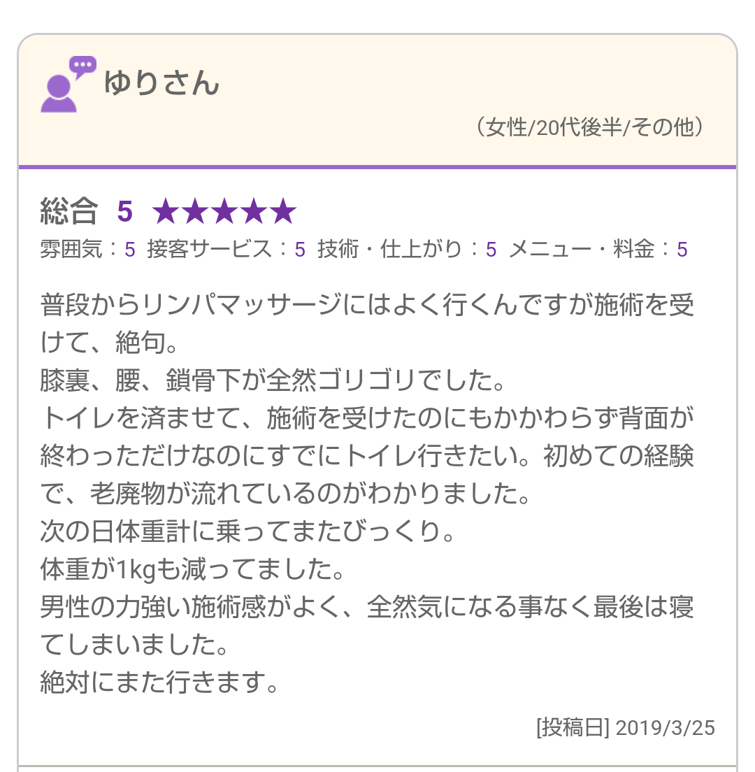 普段からリンパマッサージにはよく行くんですが施術を受けて、絶句。