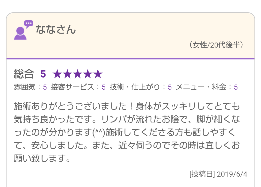アロマリンパマッサージを受けて頂いたお客様の口コミを紹介させて頂きます(^^)