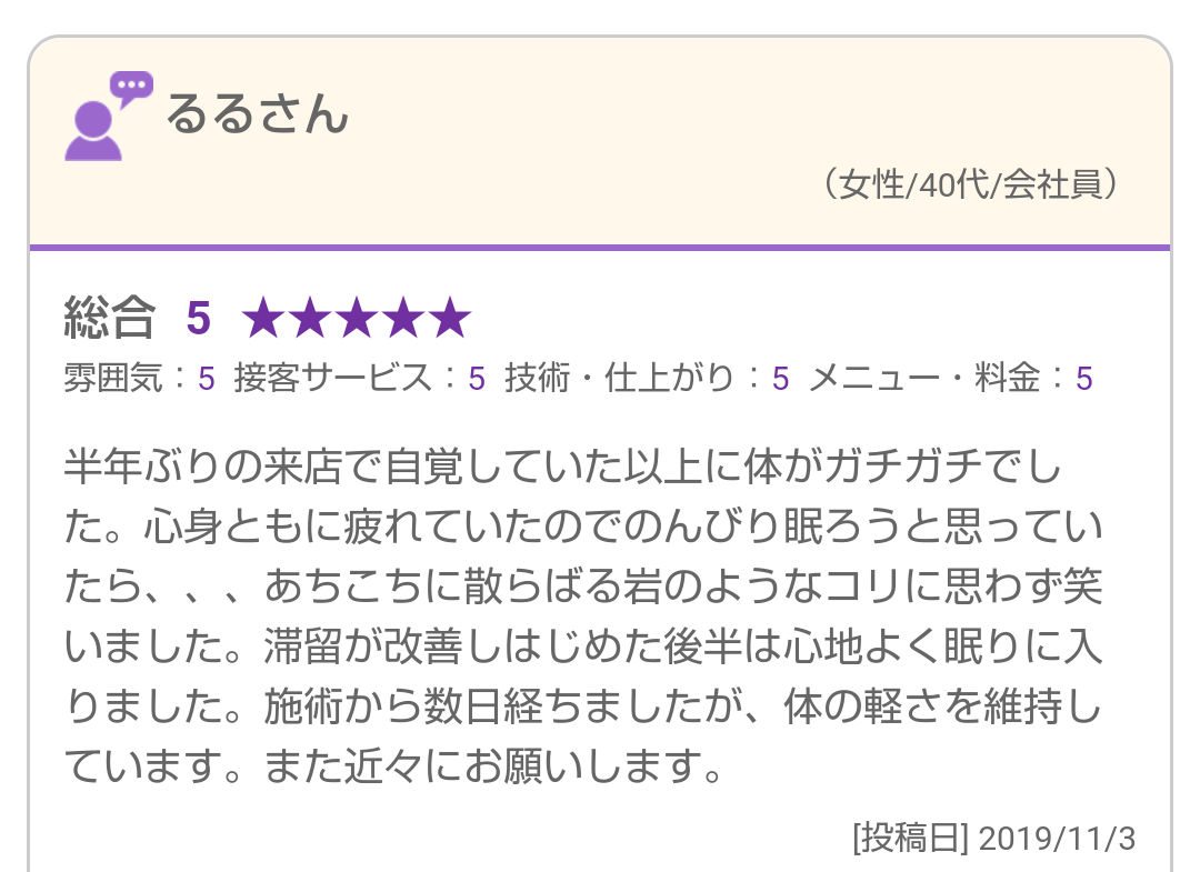 アロマリンパマッサージを受けて頂いたお客様の口コミを紹介させて頂きます(^^)