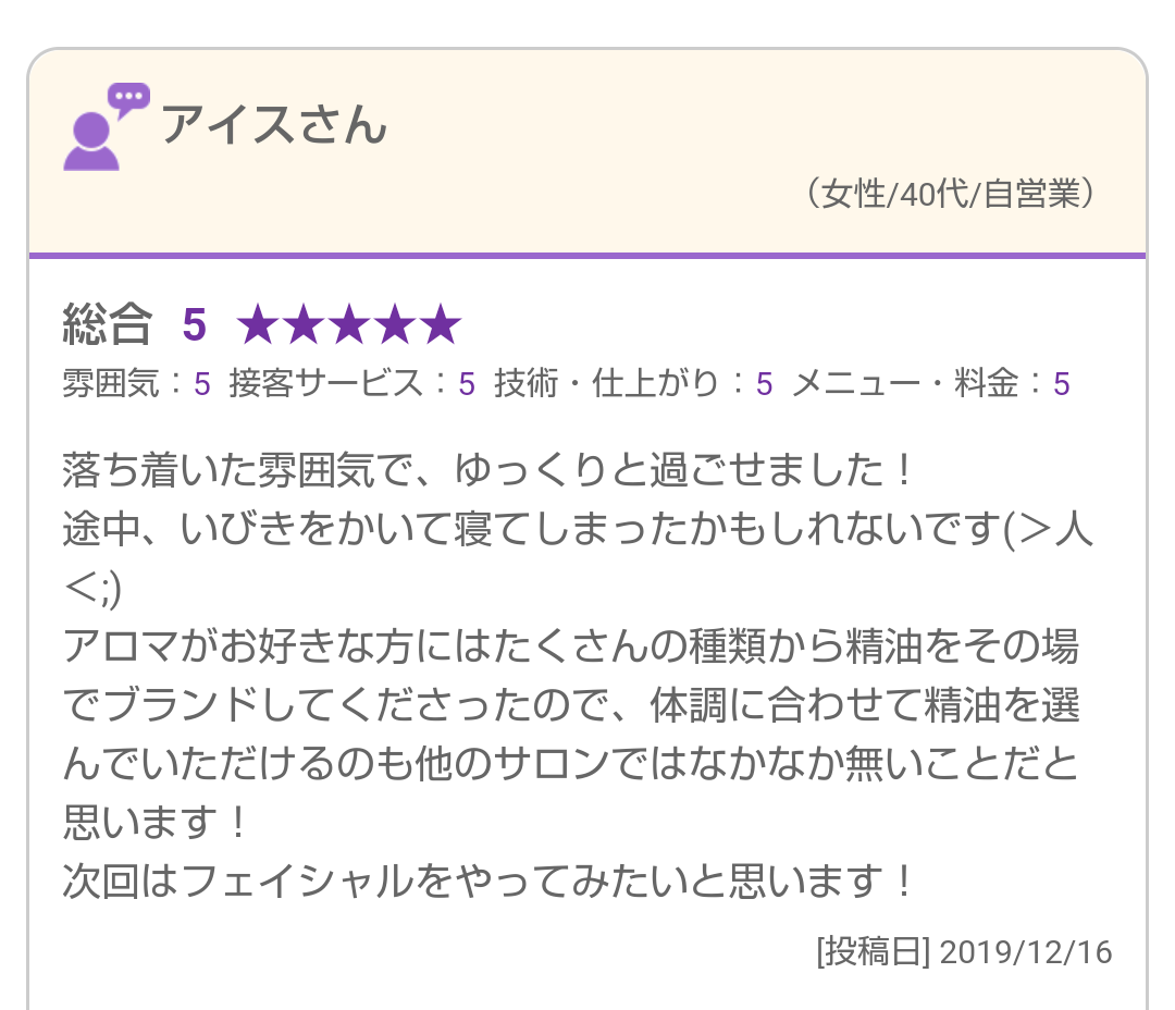 アロマリンパマッサージを受けて頂いたお客様の口コミを紹介させて頂きます(^^)