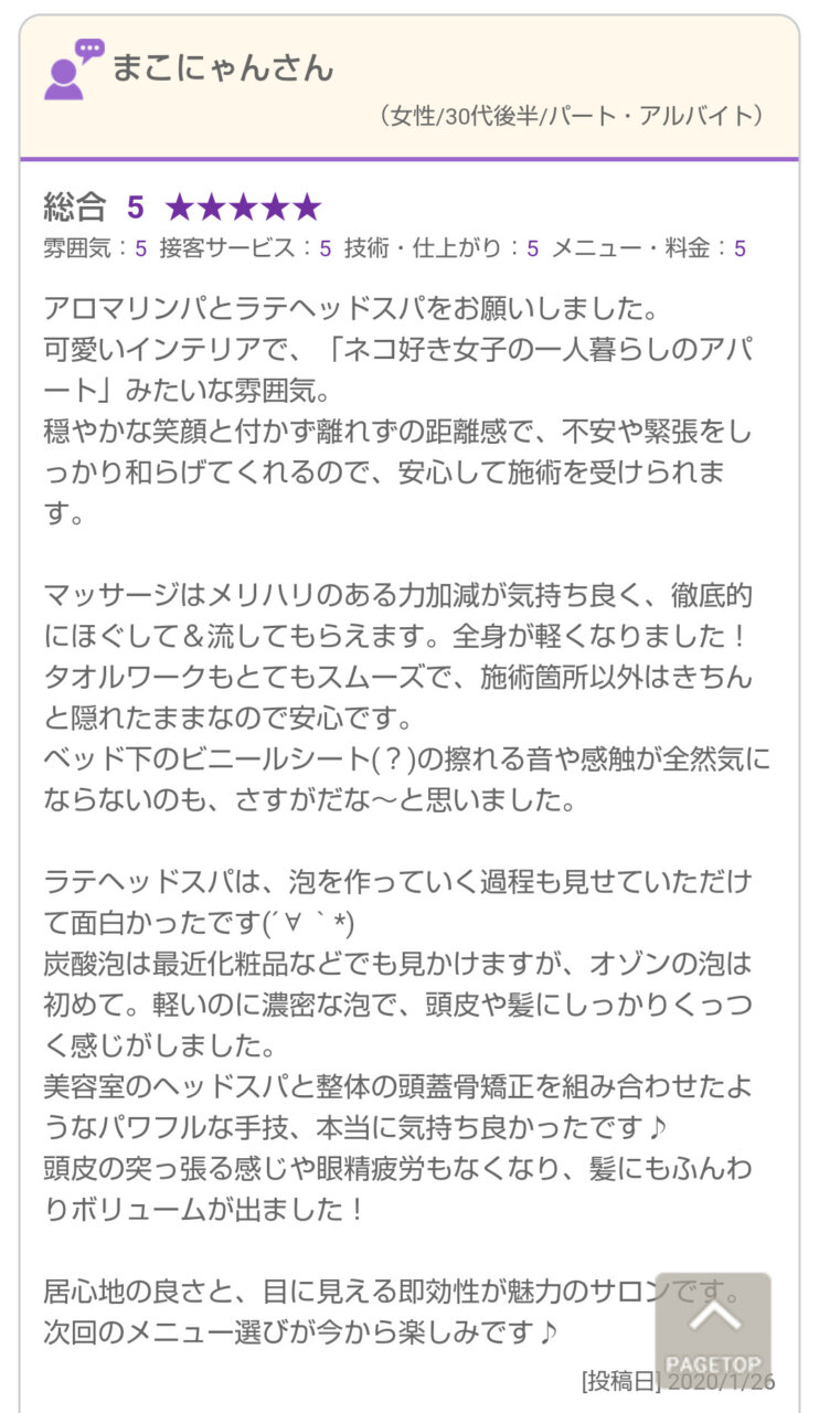 アロマリンパマッサージとラテヘッドスパを受けて頂いたお客様の口コミを紹介させて頂きます(^^)