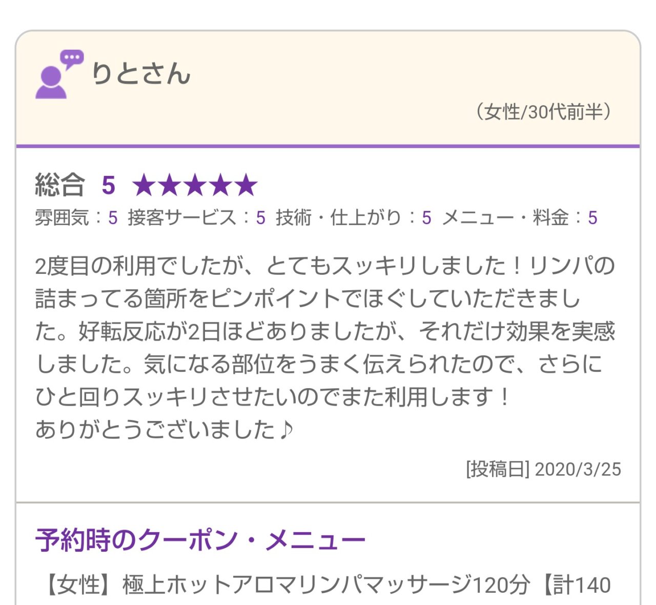 アロマリンパマッサージを受けて頂いたお客様の口コミを紹介させて頂きます(^^)