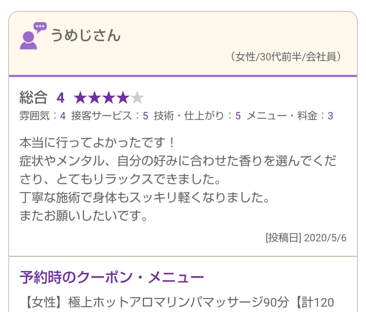 アロマリンパマッサージを受けて頂いたお客様の口コミを紹介させて頂きます(^^)