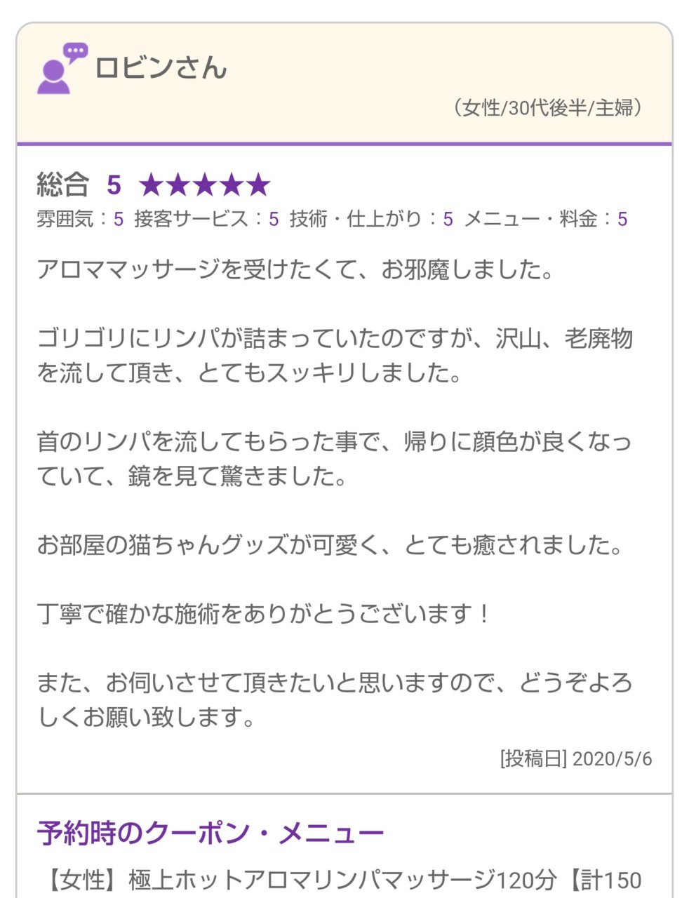 アロマリンパマッサージを受けて頂いたお客様の口コミを紹介させて頂きます(^^)
