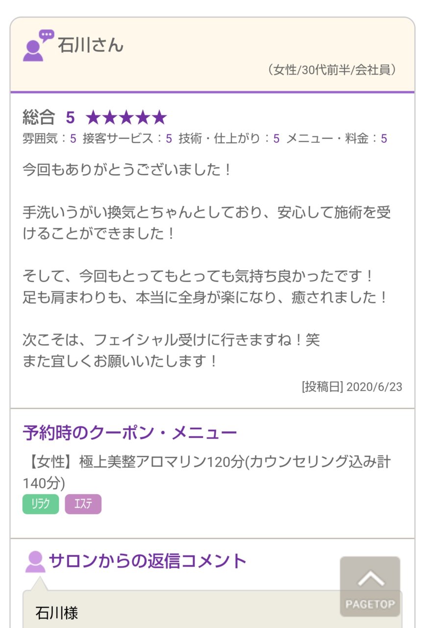 アロマリンパマッサージを受けて頂いたお客様の口コミを紹介させて頂きます(^^)