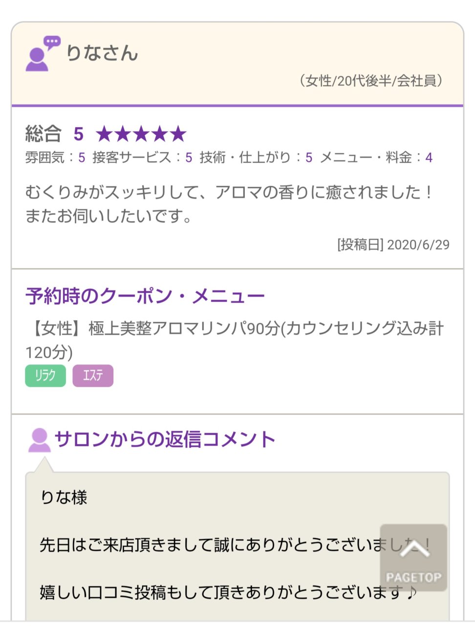美容整体アロマリンパマッサージを受けて頂いたお客様の口コミを紹介させて頂きます(^^)
