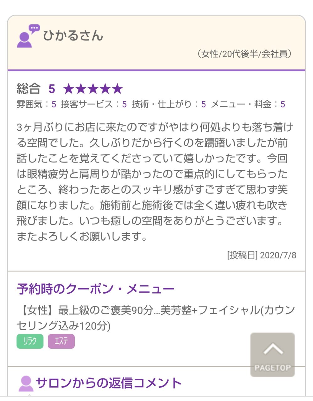 美容整体アロマリンパマッサージ&フェイシャルを受けて頂いたお客様の口コミを紹介させて頂きます(^^)