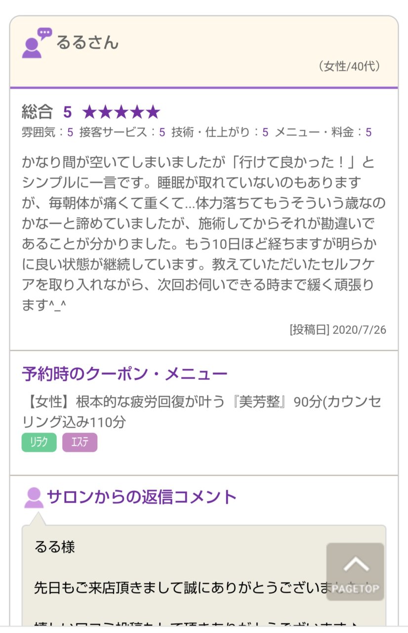 美容整体アロマリンパマッサージを受けて頂いたお客様の口コミを紹介させて頂きます(^^)