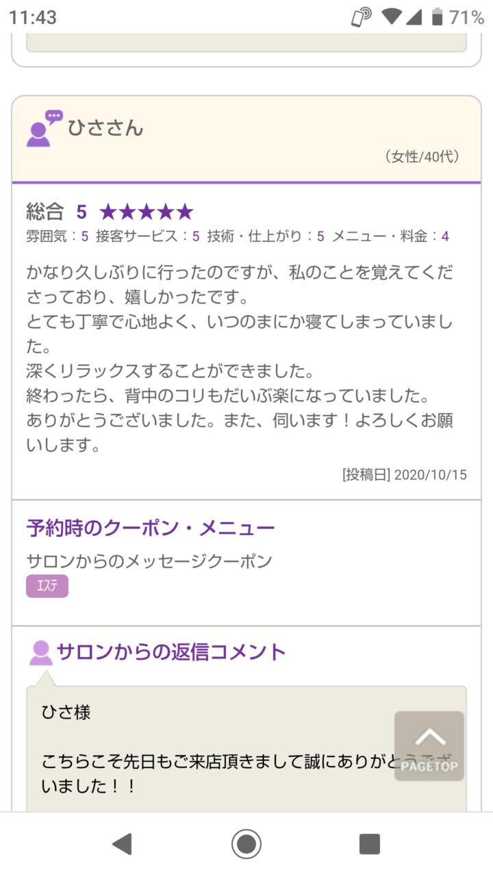 美容整体アロマリンパマッサージ&頭蓋骨調整を受けて頂いたお客様の口コミを紹介させて頂きます(^^)
