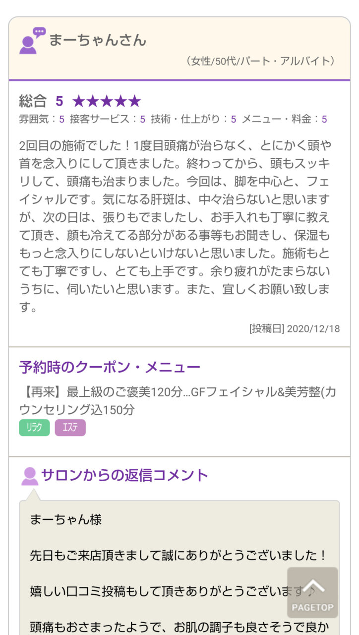 美容整体アロマリンパマッサージ&頭蓋骨調整&骨盤調整を受けて頂いたお客様の口コミを紹介させて頂きます(^^)